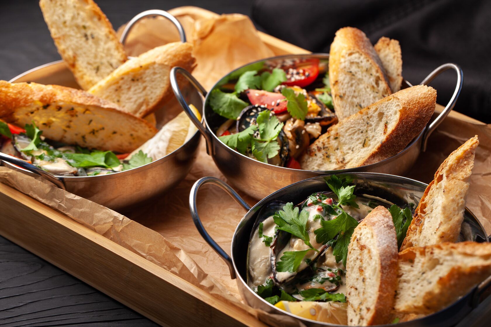 Мидии в створках в соусе том-ям/сливочный/винный