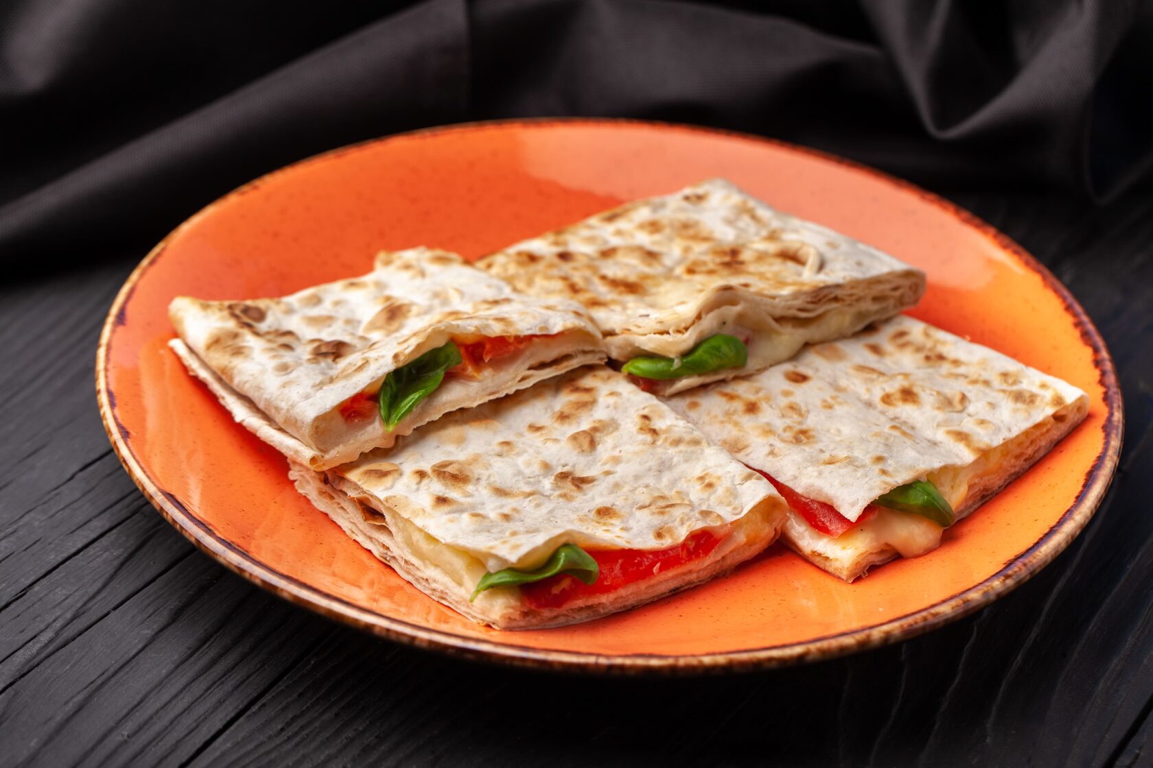 Лаваш с сыром, томатом и базиликом
